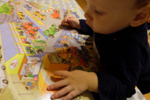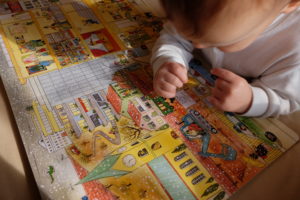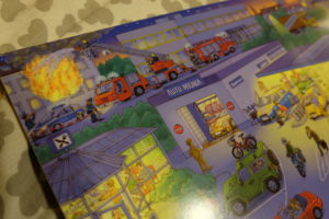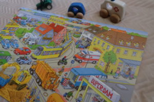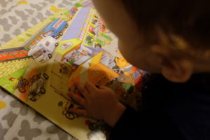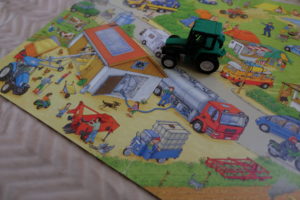 Książeczka pokazuje scenki z życia wzięte! Wielokrotnie pomagała nam połączyć i przypominać wydarzenia z rzeczywistości, ćwicząc pamięć naszego odkrywcy. Zmiana opon w aucie, zderzenie samochodów, praca ciągnika w polu, śmieciarka zabierająca nasze śmieci, to wszystko to, co Franio miał okazje zobaczyć  na żywo.