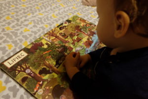 Tu dzieci maja okazje zobaczyć jak zmienia się życie zwierząt w lesie w trakcie całego roku, kto śpi w norach, kto przesypia dnie, a kto aktywny jest w nocy. Tu cykl życia wyznacza natura. To świetna pozycja do obserwowania zachowań zwierząt i masa, masa, masa wyrażeń dźwiękonaśladowczych, które bez końca możemy powtarzać i odnajdywać na jej stronach.