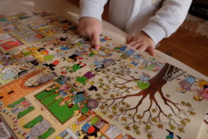 Legendarna już pozycja o której słyszałam od dzieci w gabinecie, kilka lat temu. Dzięki temu, że wydane są cztery pory roku, mamy mnóstwo okazji do porównywań zmieniającego się pejzażu za oknem. To świetna pomoc do rozmów o zachowaniach i aktywnościach ludzi, które dyktowane są przez naturę i bieg czasu. Podobnie jak w Roku w lesie obserwujemy zmiany miesiąc po miesiącu, tak tutaj mam przedstawiony większy obszar czasu. To świetna okazja do odnajdywania różnic w podobnych ilustracjach. Z pomocą całego cyklu można wspaniale poćwiczyć relacje przestrzenne śledząc, np. papugę Polę.